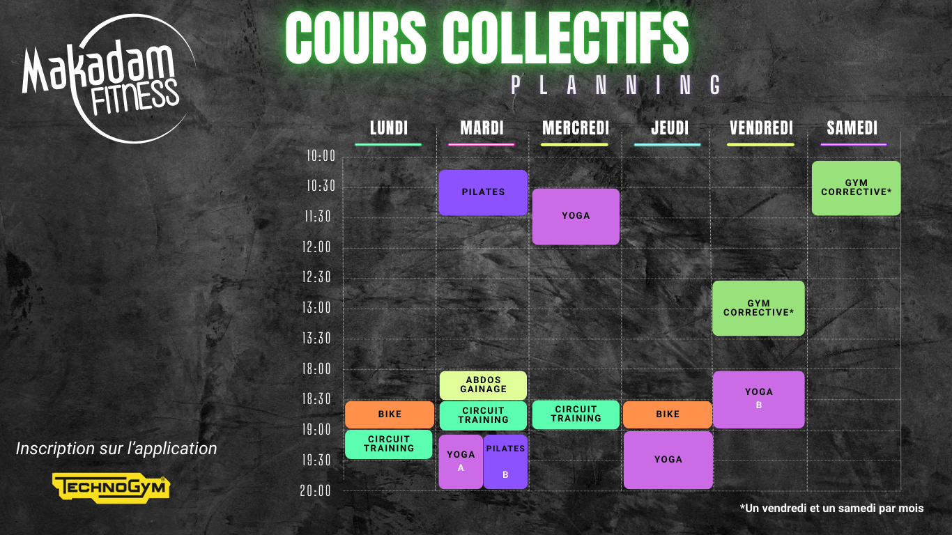 Au choix : Cross Training, Abdos, Biking, Yoga, Plates.